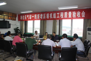 9月4日下午,由公司技術(shù)質(zhì)量部組織,陜西省石化質(zhì)監(jiān)站、延安分公司、建設(shè)總承包單位江漢石油三機(jī)廠、設(shè)計(jì)院、監(jiān)理公司、施工、檢測(cè)等單位組成的驗(yàn)收小組對(duì)靖邊壓氣站一線新增壓縮機(jī)組進(jìn)行現(xiàn)場(chǎng)質(zhì)量驗(yàn)收。